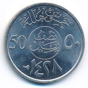 KM#68 Саудовская Аравия, 50 халала (2007 г.) Медь-Никель, 6.5 г Категории: Без тематики. Смотрите подробное описание типа в каталоге.