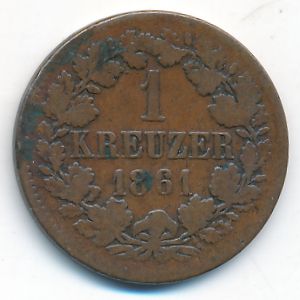 KM#242 Баден, 1 крейцер (1861 г.) Медь Категории: Без тематики. Смотрите подробное описание типа в каталоге. Уточните информацию о наличии этого товара по телефону +7 495 925-96-98.