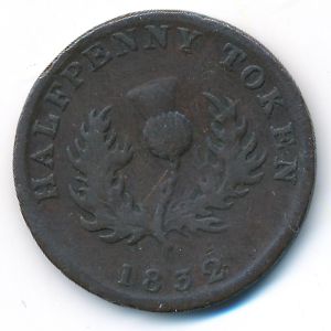 KM#1a Новая Шотландия, 1/2 пенни (1832 г.) Медь Категории: Без тематики. Токен. Смотрите подробное описание типа в каталоге. Уточните информацию о наличии этого товара по телефону +7 495 925-96-98.